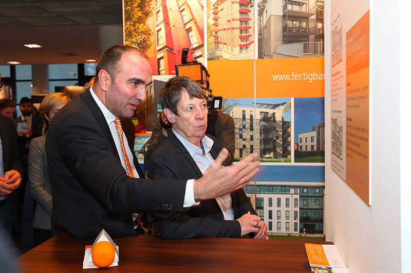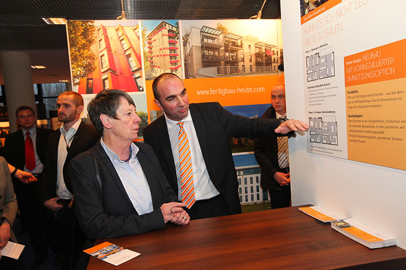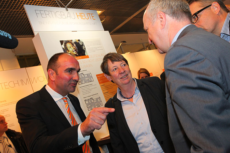 Wir freuen uns insbesondere über den Besuch von Bundesbauministerin Dr. Barbara Hendricks, welche hohe Erwartungen in den FERTIGBAU setzt, um die aktuellen Herausforderungen am Wohnungsmarkt meistern zu können. Auch vielzählige Gespräche mit Vertretern der Wohnungswirtschaft zeigen das enorme Interesse an den Möglichkeiten des FERTIGBAU HEUTE, welcher auf industrielle Vorfertigung, Holz-Beton-Hybridkonstruktionen und die konsequente Nutzung von Umweltenergie setzt.